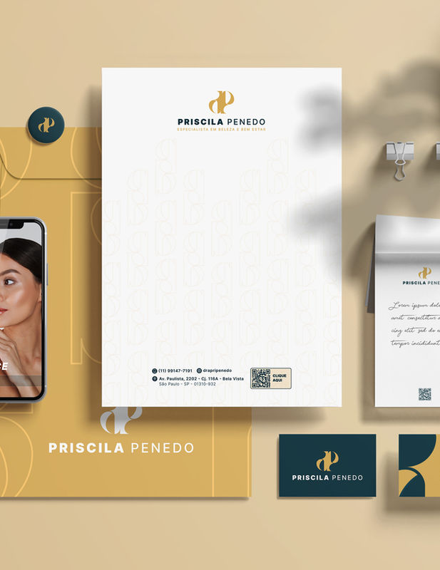 The visual identity project for Priscila Penedo is a project for a dentist who works with facial harmonization. It was developed from the concept to the application of printed and digital materials for distribution.